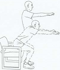 - Securely place a chair behind you (make certain that it won’t roll or move) and then stand in front of it. Keep your feet about shoulder width apart.