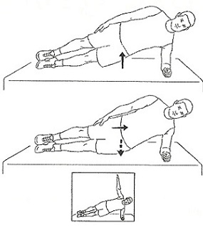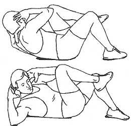 - Twist touching the opposite elbow to the knee of the raised leg.