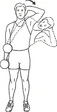- Grasping a dumbbell (or bag of rice from the kitchen), tighten abs.