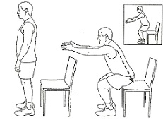 The goal is to ultimately complete the sit-to-stand exercise with no hands. This will become easier as the muscles in thighs and core (that provide stability) are strengthened.