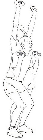- Straighten body driving weights straight overhead.