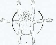 - Using controlled movements, raise arms up, making a partial circle, then lower back to straight out from sides.