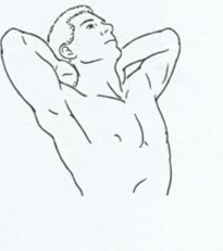- Sit or stand with hands clasped behind neck.