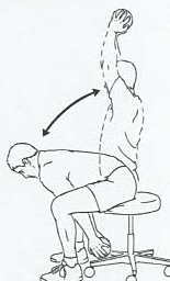 - Sitting in a chair, hold a ball low, between your legs.