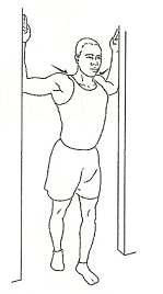 - Stand in a doorframe, palms against frame and arms at 90 degrees.
