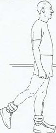 2. Keeping knee straight, draw right leg backwards, behind body as far as possible