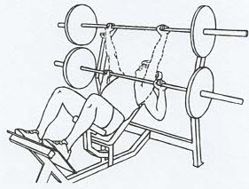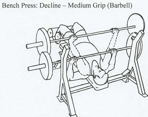 This variation is less stressful on the back and shoulders. The bench should be angled downward, so when you lie down your feet are in a higher position than your head. It works the lower chest muscles, triceps and shoulders.