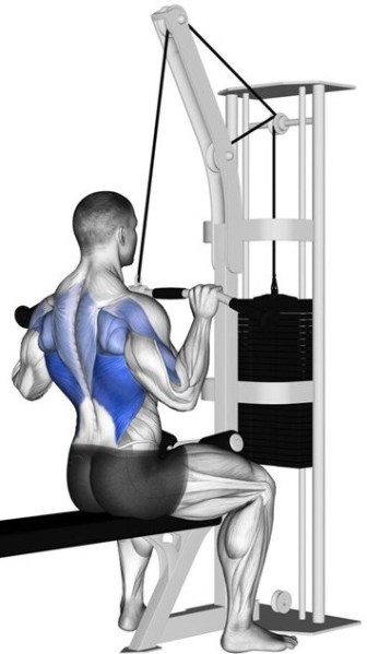 The lat pulldown works by pulling an overhead bar down to chest level. This exercise targets muscles in the back: Latissimus dorsi (“lats”) Rhomboids, Teres Major, Middle back along with the Biceps. Exercising these muscles works to improve pulling strength and posture.